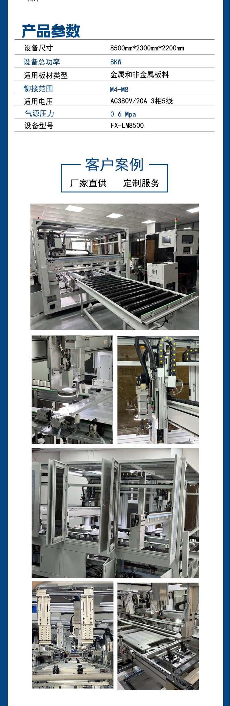 飞效自动拉钉机适用于将各种材质各种厚度的两层或多层板件通过拉铆钉连接起来的拉铆接作业