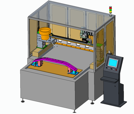 针对防撞梁的生产特性,设备流程做了精准适配:工人只需完成产品主体的上料定位,后续环节全交予设备。铆钉由振动盘自动供料,搭配视觉定位系统精准锁定拉铆点位,全自动完成拉铆作业。既省了人工反复调整的麻烦,又把定位误差压到最小,拉铆精度稳稳拿捏。