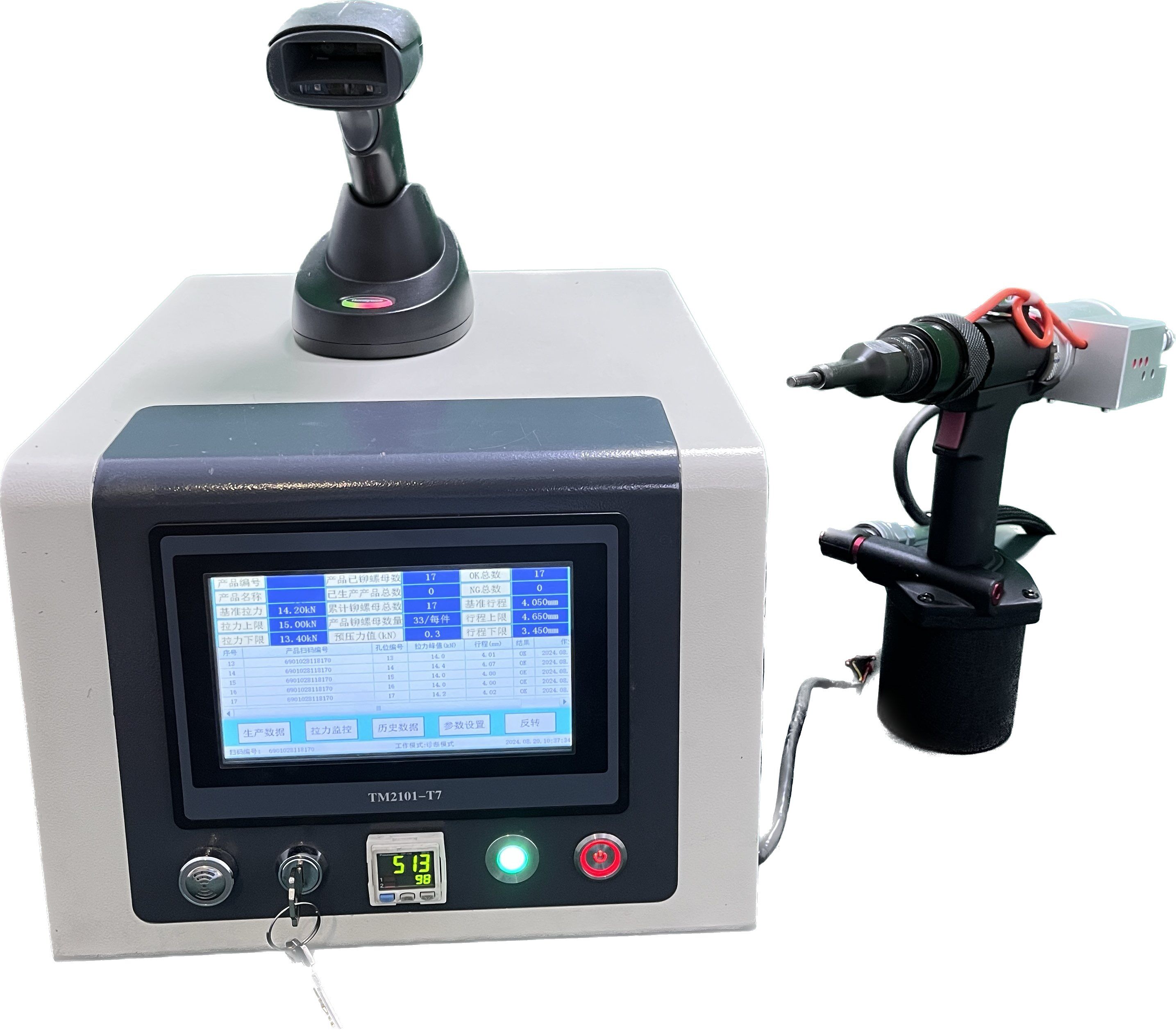 飞效气动监控拉铆螺母枪采用了先进的铆接监控系统,能够实时记录并分析铆接过程中的各项数据,确保每一步操作都精准无误。其强大的功能包括实时记录拉断情况、显示拉力与时间关系曲线、延时拉断以及故障报警等,为操作人员提供了全方位的支持与保障。